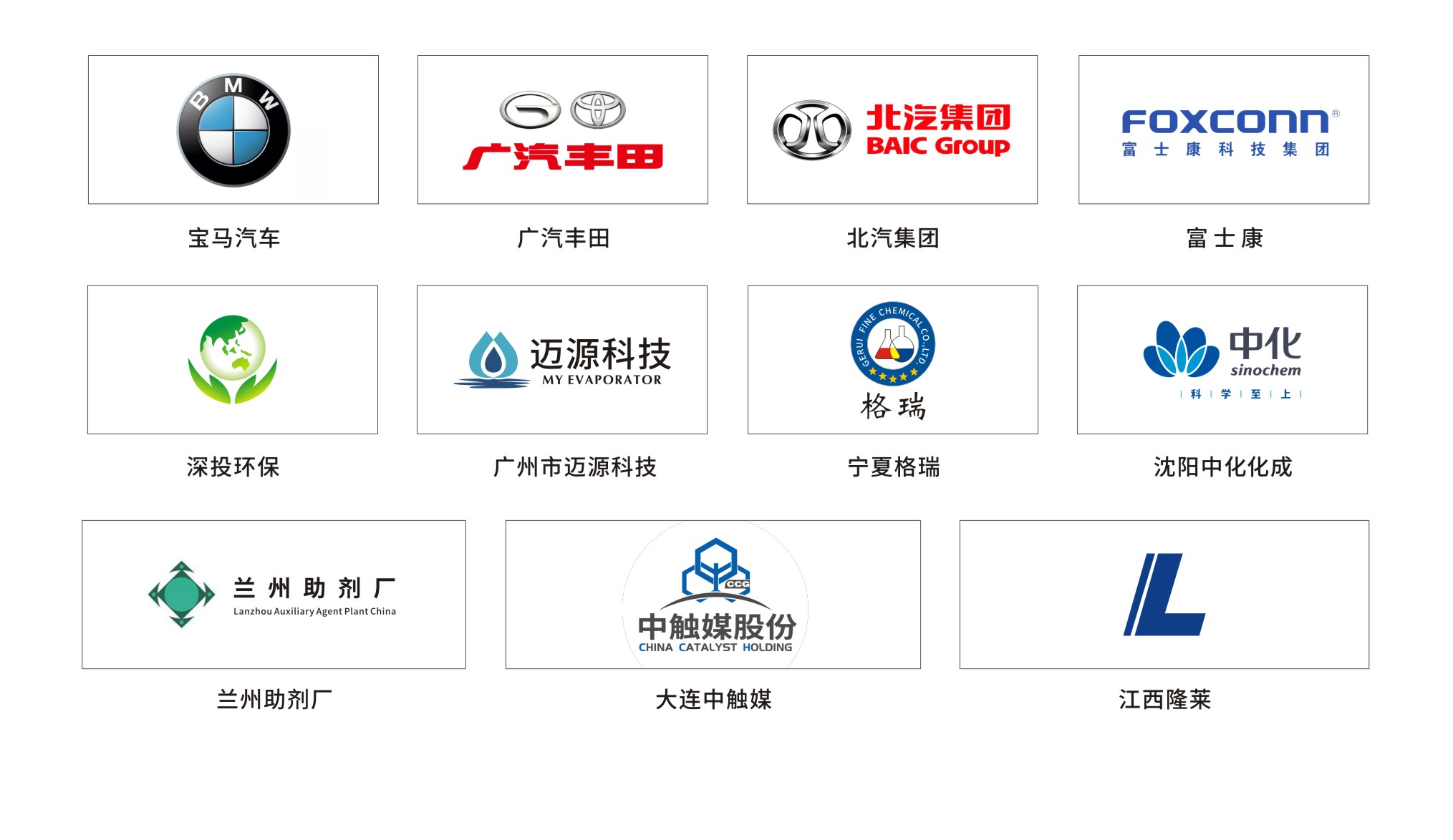 目前,公司已在成都、大連、蘇州、內(nèi)蒙古等地設(shè)立了辦事機(jī)構(gòu),服務(wù)的客戶包括深投環(huán)保、寶馬汽車、富士康、廈門嘉戎、寧夏格瑞,蘭州助劑廠、江西隆萊、大連中觸媒等行業(yè)內(nèi)領(lǐng)頭企業(yè),在國內(nèi)落地項(xiàng)目有170多家。